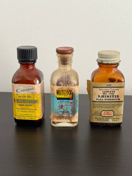 Lot of 3 vintage Mid- Century medical OTC bottles DISPLAY DECOR oddities